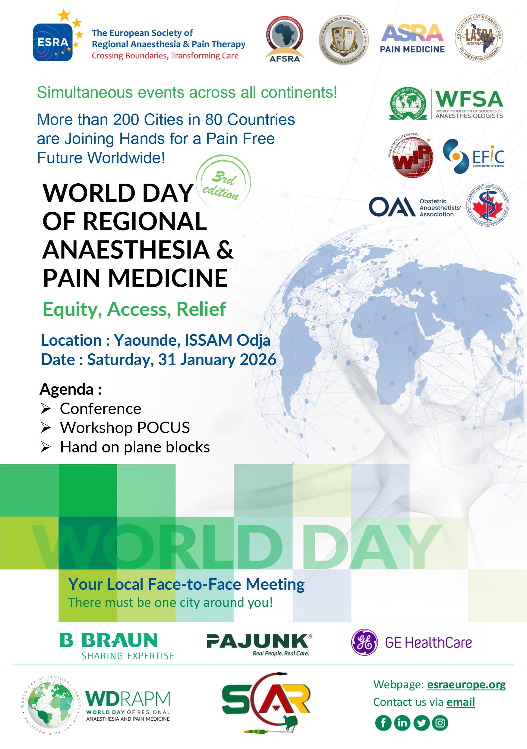 La Société Camerounaise d’Anesthésie-Réanimation (SCAR) est la société savante nationale qui regroupe les médecins anesthésistes-réanimateurs, les infirmiers anesthésistes et l’ensemble des professionnels engagés dans la sécurité anesthésique et la prise en charge des urgences vitales au Cameroun.